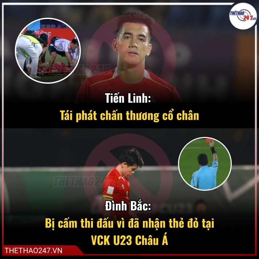 Ở một diễn biến khác, ĐT Việt Nam cũng chắc chắn không có sự phục vụ của Nguyễn Đình Bắc ở trận gặp Malaysia ngày 31/3 tới. Tiền đạo đang khoác áo CAHN bị treo giò sau thẻ đỏ trực tiếp ở trận tranh hạng ba U23 châu Á gặp U23 Hàn Quốc. Theo quy định của AFC, Đình Bắc sẽ bị cấm thi đấu ít nhất 2 trận chính thức thuộc hệ thống AFC của đội tuyển quốc gia. Do đã quá tuổi dự U23 châu Á 2028, án phạt này sẽ được áp dụng ở ĐTQG, đồng nghĩa với việc anh vắng mặt trước Malaysia.