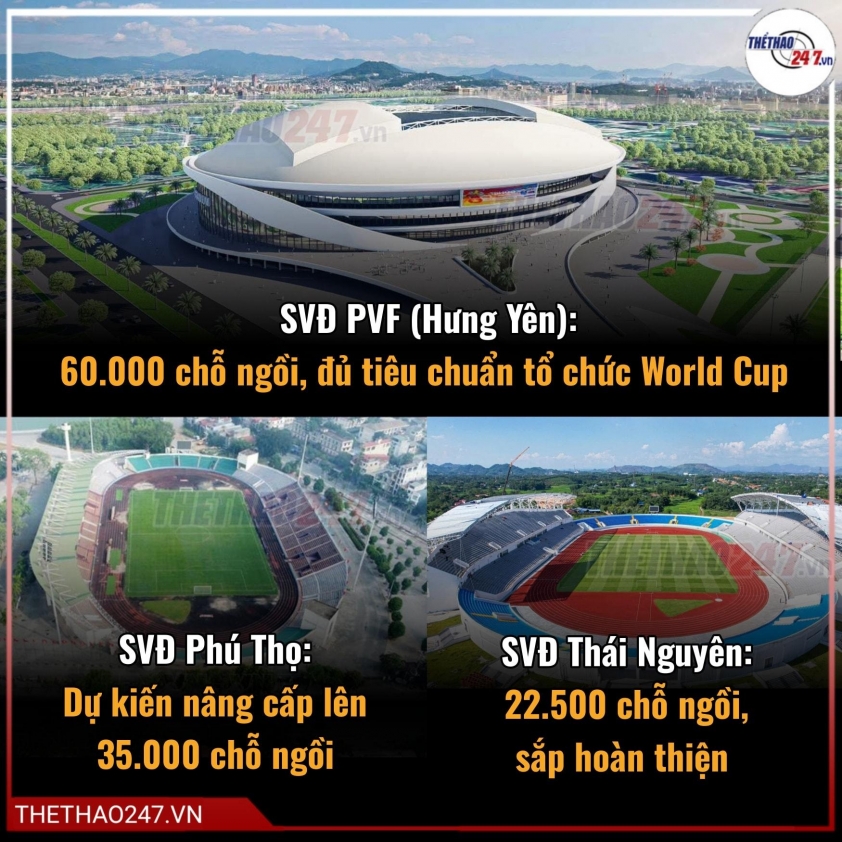 Sân Trống Đồng, dự kiến hoàn thành vào tháng 8/2028 ở khu vực phía Nam ngoại ô thủ đô Hà Nội, sẽ có sức chứa 135.000 chỗ ngồi, gần gấp đôi sân Old Trafford của Manchester United (74.310 chỗ) tại Premier League.”