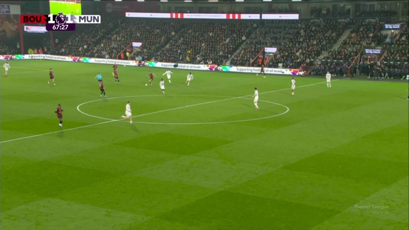 Cuối trận, Harry Maguire bị truất quyền thi đấu sau pha phạm lỗi với Evanilson trong vòng cấm. Trọng tài Stuart Attwell xác định đây là tình huống ngăn cản cơ hội ghi bàn rõ rệt và rút thẻ đỏ trực tiếp cho trung vệ người Anh. Bournemouth sau đó được hưởng phạt đền, và Junior Kroupi đã thực hiện thành công, khép lại một trận đấu đầy tranh cãi và cảm xúc.
