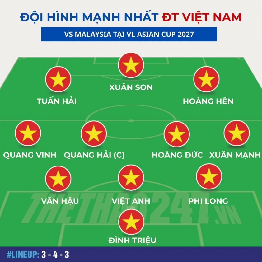Với bộ khung 3-4-3 giàu thể lực, kỹ thuật và chiều sâu đội hình, tuyển Việt Nam được kỳ vọng sẽ tạo ra thế trận chủ động trước Malaysia. Nếu các trụ cột duy trì phong độ, đây hoàn toàn có thể là đội hình tối ưu để hướng tới mục tiêu giành kết quả thuận lợi ở trận đấu sắp tới.