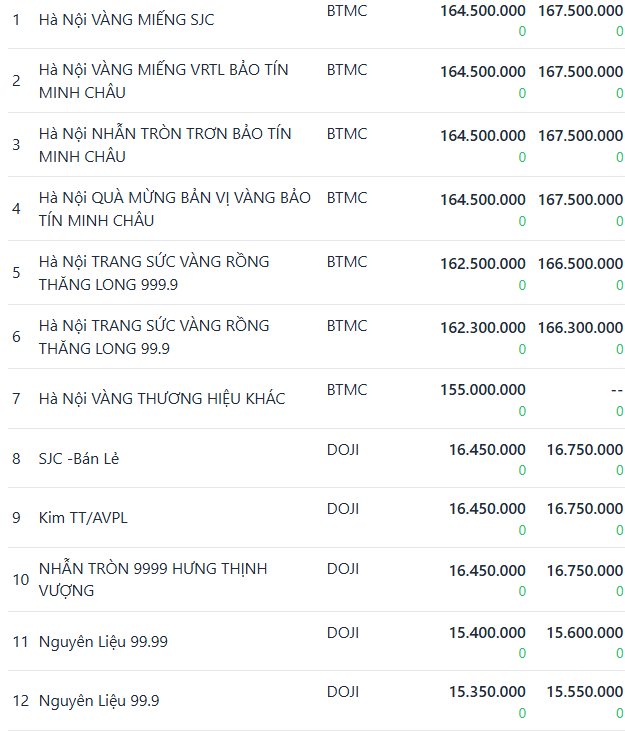 So với các đơn vị khác như Bảo Tín Minh Châu (BTMC) hay các dòng vàng miếng SJC lẻ của chính DOJI, khoảng cách chênh lệch là rất lớn. Cụ thể, trong khi vàng miếng SJC tại BTMC vẫn giữ vững mức 164,5 triệu đồng/lượng (mua vào) và 167,5 triệu đồng/lượng (bán ra), thì vàng nguyên liệu của DOJI thấp hơn tới hơn 10 triệu đồng/lượng. Sự biến động mạnh này cho thấy sự tách biệt rõ rệt giữa giá vàng miếng thương hiệu quốc gia và các loại vàng nguyên liệu, trang sức trong phiên giao dịch hiện tại.