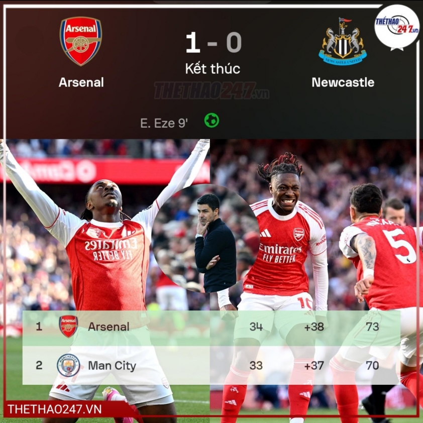 Đây tiếp tục là một trận đấu mà Arsenal chỉ thắng với cách biệt một bàn. Tuy nhiên, Arteta chắc chắn không thể hoàn toàn hài lòng khi chứng kiến Kai Havertz và Eberechi Eze đều phải rời sân vì vấn đề thể lực. Bên cạnh đó, Newcastle cũng đã bỏ lỡ hai cơ hội ngon ăn có thể thay đổi cục diện trận đấu.