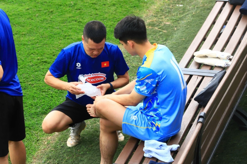 Thực tế, dấu hiệu bất ổn đã xuất hiện từ trước đó một ngày. Trong buổi tập sáng 27/3, Văn Khang gặp vấn đề về thể trạng và không thể hoàn thành trọn vẹn giáo án. Cụ thể, tiền vệ này bị đau ở vùng bắp đùi và buộc phải rời sân sớm. Sau đó, anh được đội ngũ y tế hỗ trợ chườm đá ngay bên ngoài đường biên.