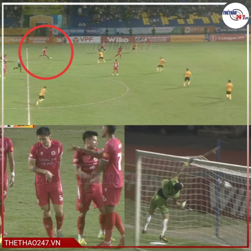 Phút 66, trong một tình huống Thanh Hóa dâng cao đội hình, thủ môn Xuân Hoàng rời khung thành để tham gia phát động bóng. Nhận thấy khoảng trống mênh mông phía sau, Văn Hậu đoạt được bóng từ giữa sân và lập tức tung cú sút quyết đoán bằng chân trái. Trái bóng bay theo quỹ đạo hoàn hảo, vượt qua tầm với của Xuân Hoàng rồi đập đất đi thẳng vào lưới, khiến khán đài sân Thanh Hóa sững lặng trước khi vỡ òa.