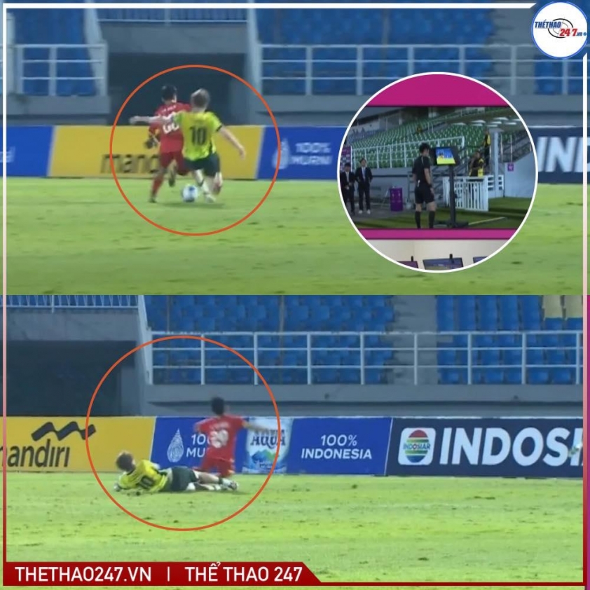 Ban đầu, trọng tài chính xác định đây là lỗi rõ ràng, rút thẻ vàng với cầu thủ U17 Australia và cho U17 Việt Nam hưởng quả phạt đền. Trong bối cảnh Sỹ Bách đang đối mặt cơ hội ghi bàn mười mươi, nhiều người cho rằng đây thậm chí có thể là tình huống xứng đáng với thẻ đỏ.