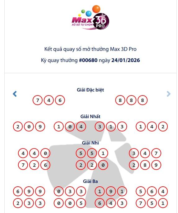 - Kết quả Vietlott Max 3D Pro ngày 24/01/2026: