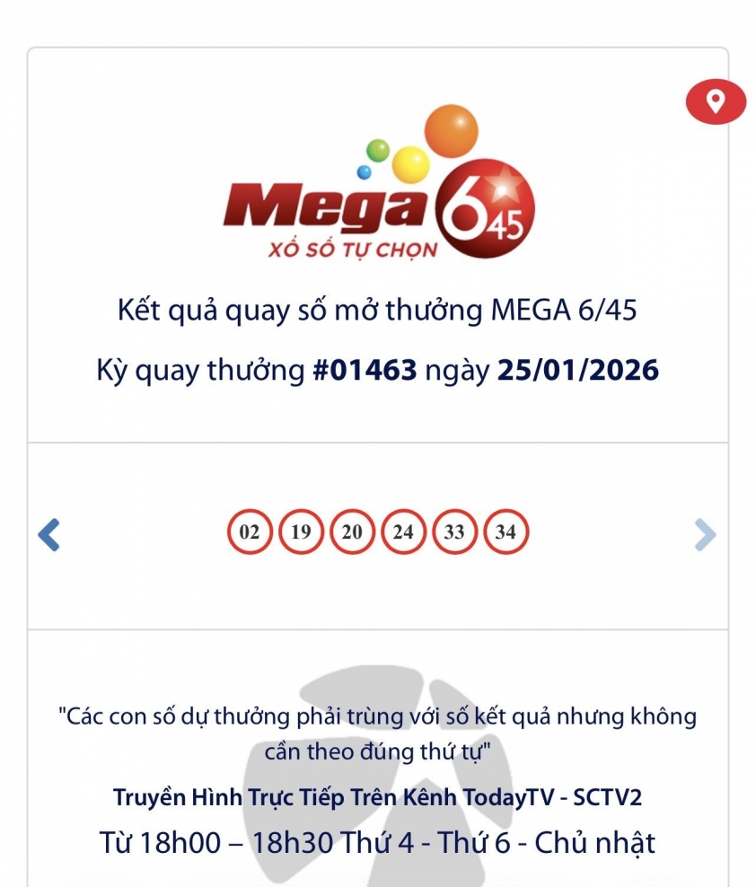 - Kết quả Vietlott Mega 6/45 ngày 25/1/2026: