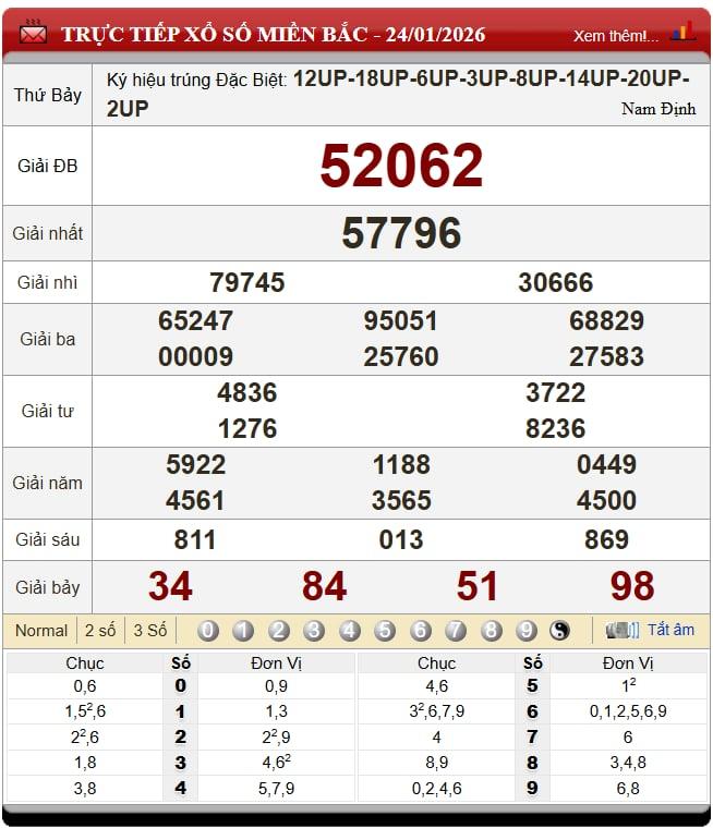 Kết quả xổ số miền Bắc (XSMB) ngày 24/1