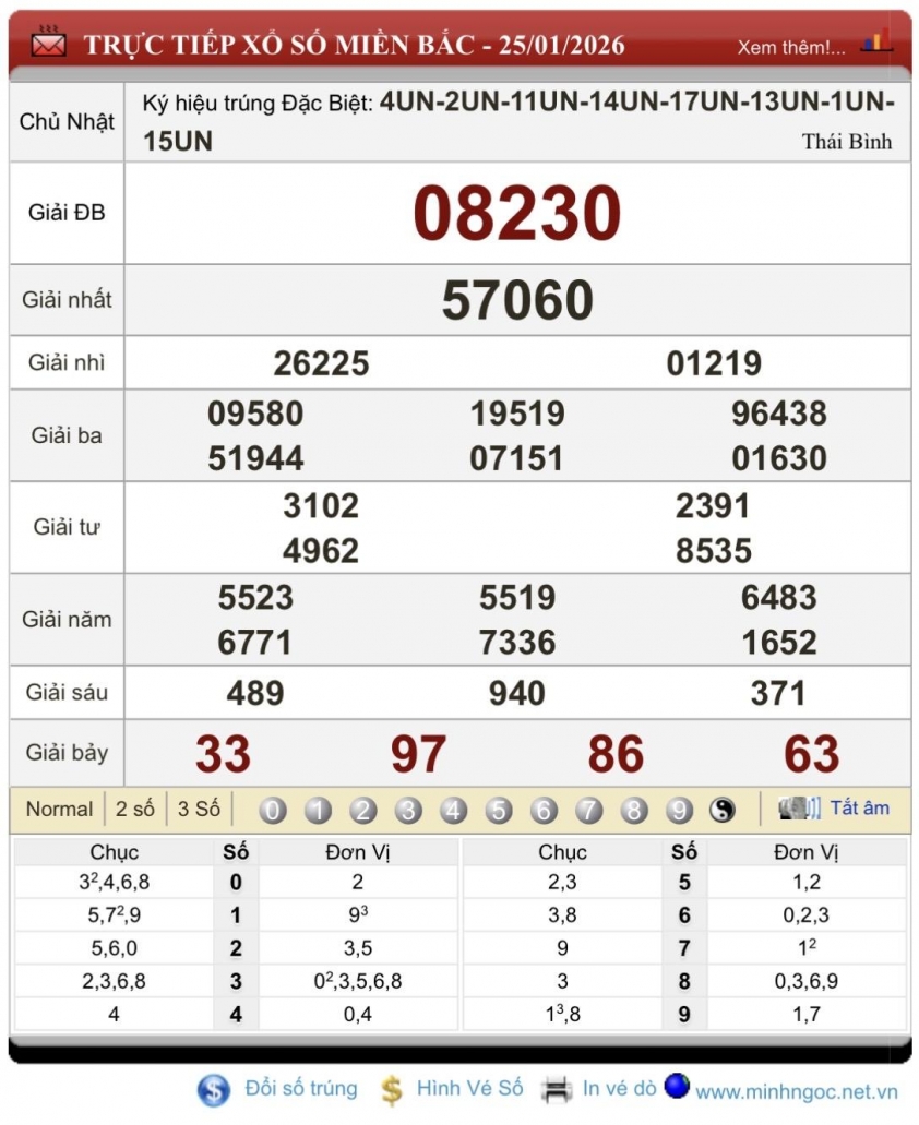 XSMB 25/1/2026 - Kết quả xổ số miền Bắc hôm nay 25/1/2026