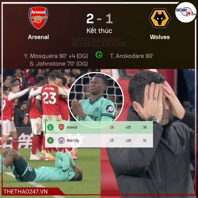 Trong suốt hơn 70 phút đầu tiên, Arsenal kiểm soát thế trận, cầm bóng vượt trội và liên tục dồn ép đối thủ, nhưng thứ mà họ thiếu lại chính là sự sắc bén ở những pha xử lý cuối cùng. Wolves phòng ngự lùi sâu, kỷ luật và chờ đợi thời cơ phản công, trong khi các học trò của Arteta tỏ ra bế tắc trong việc xuyên thủng hàng thủ được tổ chức chặt chẽ của đội khách. Phải nhờ đến hai tình huống phản lưới nhà liên tiếp của Wolves ở cuối trận, Arsenal mới có thể giành trọn vẹn 3 điểm trong một trận đấu mà họ không hề tạo ra cảm giác “áp đảo tuyệt đối” như kỳ vọng.