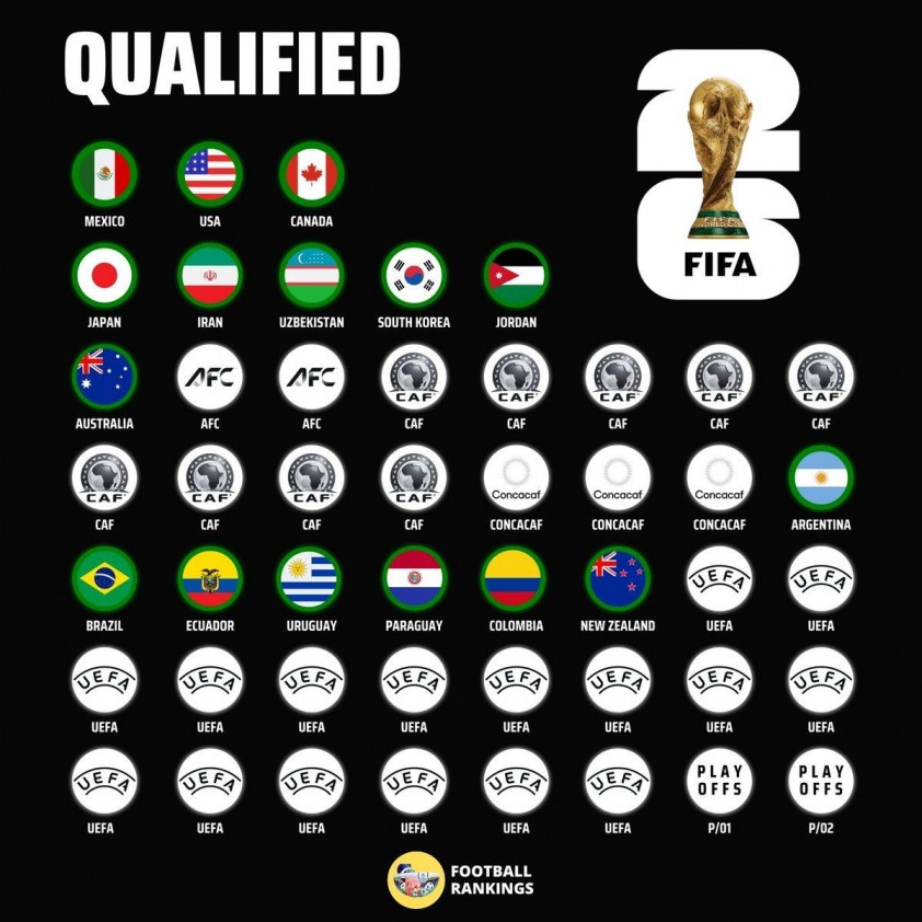 Như vậy, tính đến thời điểm này, 6 đội tuyển Nam Mỹ đã chính thức giành vé dự World Cup 2026 gồm: Brazil, Argentina, Uruguay, Colombia, Paraguay và Ecuador. Với việc giải đấu lần đầu mở rộng lên 48 đội, khu vực CONMEBOL có 6 suất đi thẳng cùng 1 suất đá play-off liên lục địa.