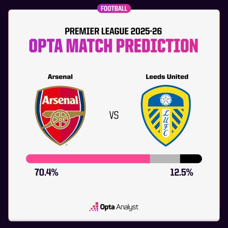 Lịch sử đối đầu: Trong 5 trận gần nhất, Arsenal thắng cả 5. Leeds thua cả 5.
