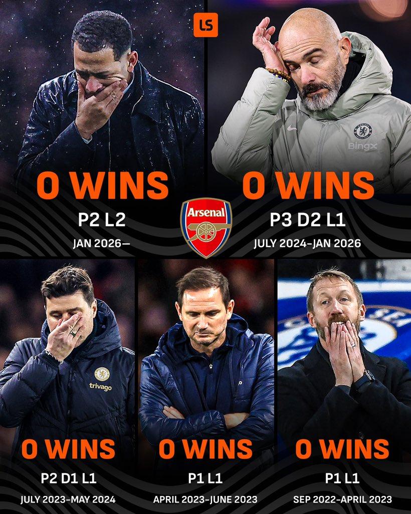 Trước Rosenior, bốn đời HLV gần nhất của Chelsea đều bất lực trong việc khuất phục Arsenal. Dưới thời Enzo Maresca, “The Blues” chỉ có 2 trận hòa và 1 thất bại khi đối đầu “Pháo thủ”. Thời Mauricio Pochettino, Chelsea cũng chỉ có 1 trận hoà sau hai lần chạm trán, còn Frank Lampard và Graham Potter đều từng nếm mùi thua cuộc.