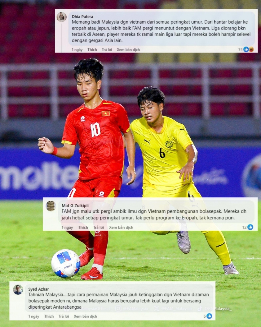 Không chỉ dừng lại ở cấp độ đội tuyển quốc gia, người hâm mộ Malaysia còn nhìn vào hệ thống đào tạo trẻ của Việt Nam như một hình mẫu. “Chúng ta đừng ngại sang Việt Nam tìm kiếm kiến thức phát triển bóng đá. Họ luôn thi đấu rất bài bản ở mọi cấp độ, dù là những lứa cầu thủ trẻ nhất”, một CĐV khác nhận xét, cho thấy sự đánh giá cao về tính hệ thống và ổn định của bóng đá Việt Nam.