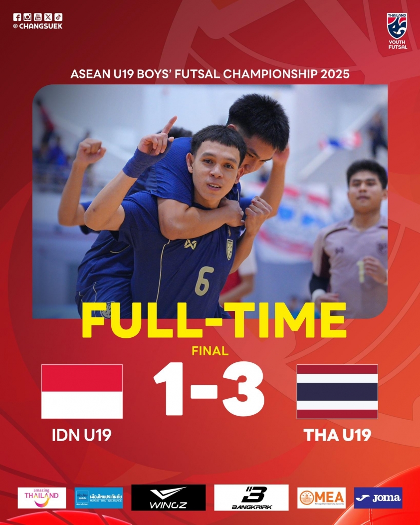 U19 futsal Thái Lan thắng Indonesia 3-1 để vô địch Đông Nam Á 2025, mở ra làn sóng cảm xúc bùng nổ từ người hâm mộ xứ chùa Vàng.