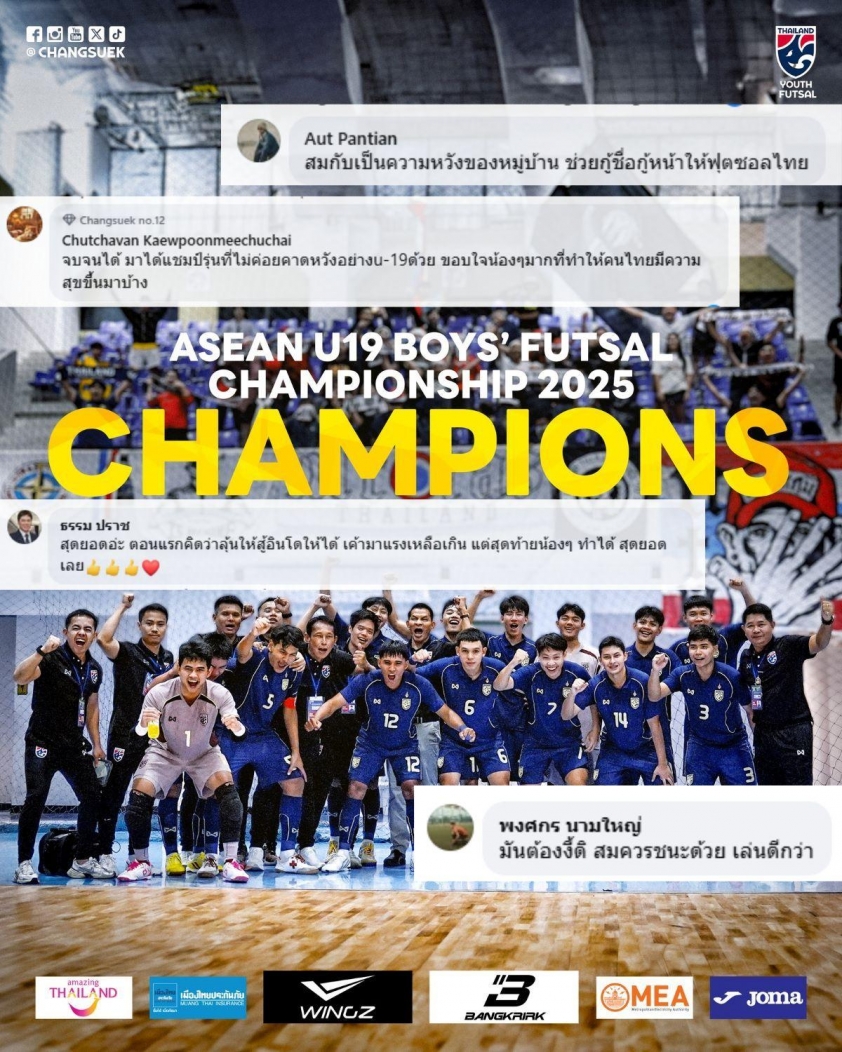 Trên các diễn đàn và mạng xã hội, nhiều người hâm mộ bày tỏ sự nhẹ nhõm và tự hào. Với họ, U19 futsal đã phần nào “giải cứu” hình ảnh thể thao nước nhà sau quãng thời gian u ám. Một CĐV xúc động chia sẻ: “Xứng đáng là niềm hy vọng của tất cả, đã giúp cứu vãn danh dự và thể diện cho futsal Thái Lan.”