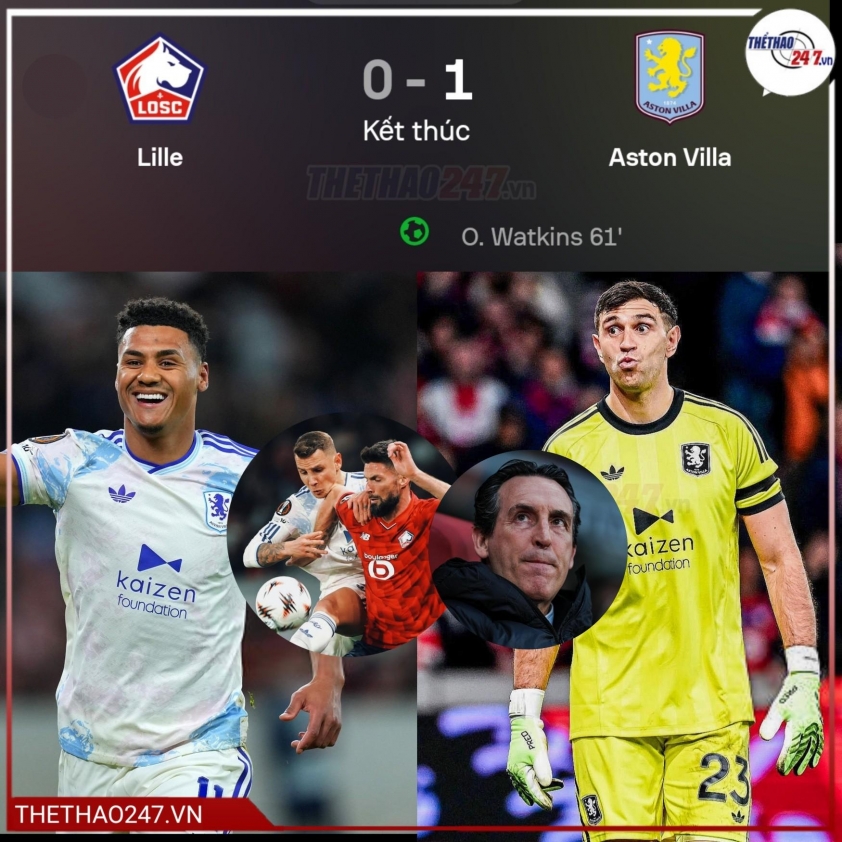 Aston Villa giành chiến thắng tối thiểu 1-0 trước Lille ngay trên sân Stade Pierre Mauroy để chấm dứt chuỗi bốn trận không thắng. Trận đấu diễn ra khá tẻ nhạt trong hiệp một khi cả hai đội đều thiếu sắc bén trong khâu dứt điểm. Cơ hội đáng chú ý đầu tiên chỉ xuất hiện ở phút 40 khi Morgan Rogers sút xa vọt xà, trong khi Emiliano Martínez phải cứu thua trước cú sút của Romain Perraud.