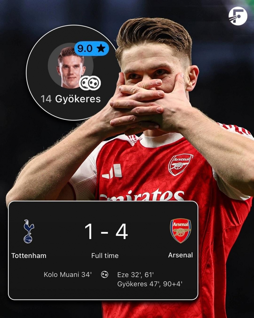 Cuối tuần qua, Gyokeres góp công lớn trong chiến thắng 4-1 trước Tottenham khi lập cú đúp, cùng Eberechi Eze giúp Arsenal khẳng định vị thế dẫn đầu Premier League. Trận derby Bắc London không chỉ mang ý nghĩa điểm số mà còn cho thấy tầm ảnh hưởng ngày càng rõ rệt của tân binh đắt giá trên hàng công đội bóng thành London.
