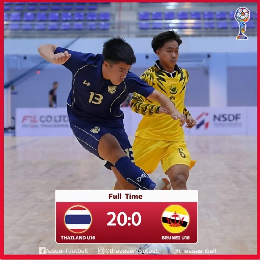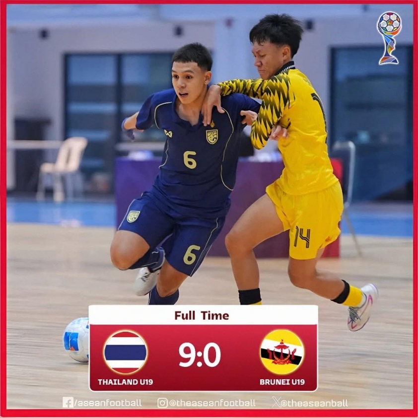 Ở cấp độ U19, futsal Thái Lan tiếp tục tạo “bão bàn thắng” khi đánh bại Brunei 9-0 tại bảng A giải U19 Đông Nam Á. Chiến thắng này đến ngay trước thềm trận đại chiến gặp U19 Việt Nam, càng khiến sự chú ý dồn về đội bóng xứ Chùa Vàng, đội đang thể hiện sức mạnh vượt trội cả về thể lực lẫn tốc độ.