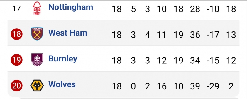 Wolves cũng chưa thoát khỏi vòng xoáy thất bại, dù có những thời điểm chơi khởi sắc. Sau 18 vòng, cuộc chiến trụ hạng bắt đầu định hình, và nếu không sớm cải thiện hiệu quả, một vài đội bóng sẽ phải trả giá đắt ở giai đoạn còn lại của mùa giải.