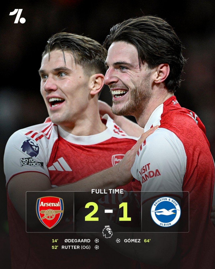 Arsenal tiếp tục giữ ngôi đầu bảng sau chiến thắng trước Brighton, song màn trình diễn ấy vẫn để lại nhiều băn khoăn. “Pháo thủ” kiểm soát thế trận, tạo ra lượng cơ hội vượt trội nhưng hiệu suất dứt điểm chưa tương xứng, buộc họ phải trải qua những phút cuối đầy căng thẳng.