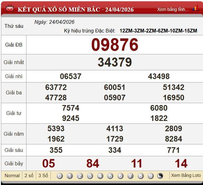 Kết quả xổ số miền Bắc (XSMB) ngày 24/4