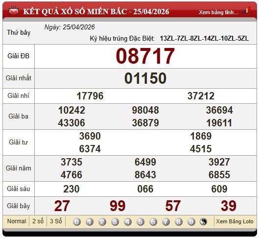 Kết quả xổ số miền Bắc (XSMB) hôm nay ngày 25/4