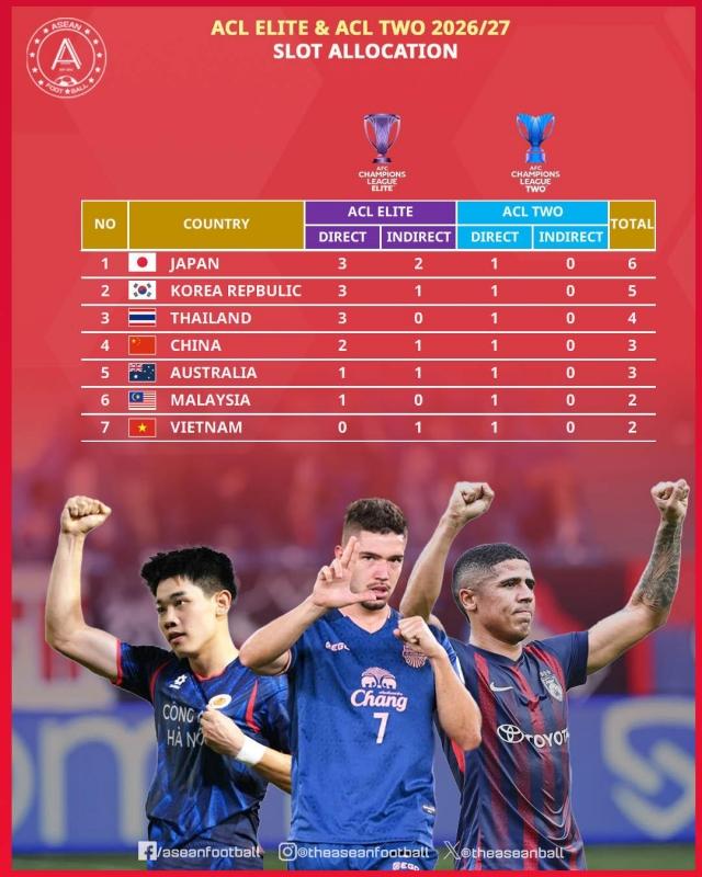 Tờ BHarian (Malaysia) đưa tin, những thông tin lan truyền gần đây về việc AFC Champions League Elite mùa 2026/27 có thể mở rộng suất tham dự, đặc biệt liên quan đến các CLB Đông Nam Á, trong đó có khả năng V.League (Việt Nam) được đá play-off, hiện vẫn chưa được xác nhận chính thức.