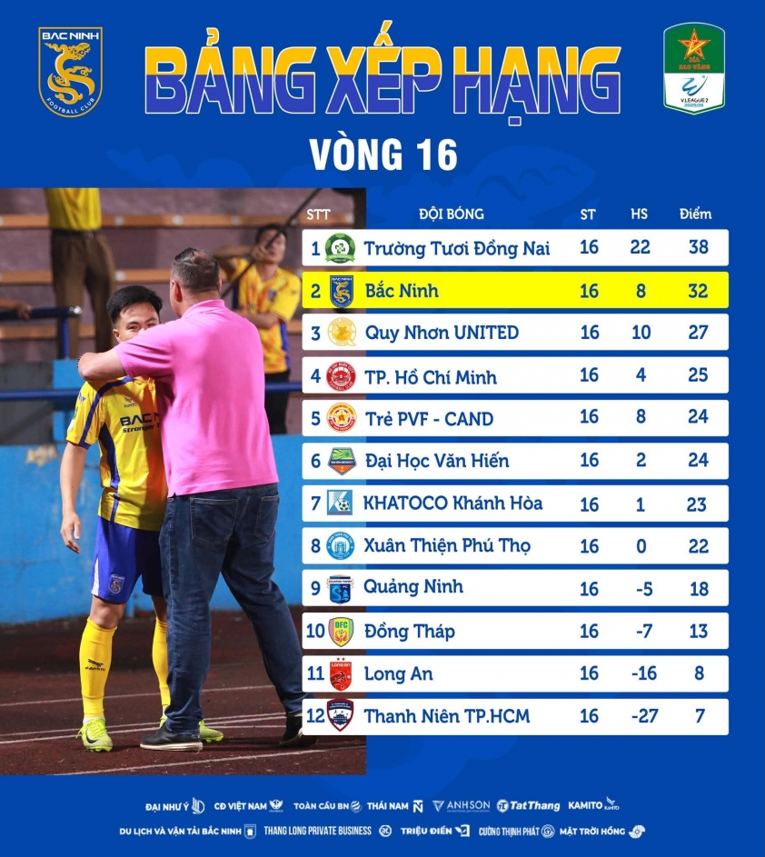 Chiến thắng 3-1 ngay trên sân Phú Thọ ở vòng 16 trở thành bước ngoặt quan trọng với thầy trò HLV Paulo Foiani. Ba điểm quý giá không chỉ giúp Bắc Ninh củng cố vị trí thứ hai với 32 điểm mà còn tạo khoảng cách lên tới 5 điểm với nhóm bám đuổi phía sau. Trong bối cảnh Đồng Nai gần như chắc chắn hướng tới chức vô địch với 38 điểm và chuỗi bất bại ấn tượng, mục tiêu thực tế nhất của Bắc Ninh là giữ chắc ngôi á quân để giành quyền đá play-off.