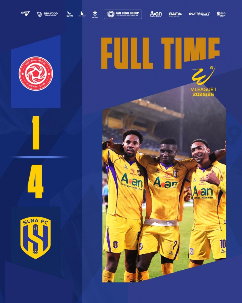 Tinh thần ấy được thể hiện rõ trong chiến thắng gây sốc của SLNA trước Thể Công Viettel ở vòng 13 V-League 2025/26. Trên sân Hàng Đẫy tối 8/2, đội bóng xứ Nghệ đánh bại đối thủ đang nằm trong nhóm đầu bảng với tỷ số đậm 4-1, dù phải thi đấu thiếu người từ phút 69 sau chiếc thẻ đỏ của Vương Văn Huy. Trong hoàn cảnh bất lợi, hàng phòng ngự SLNA vẫn đứng vững, tạo tiền đề cho hai bàn thắng muộn đầy bất ngờ.