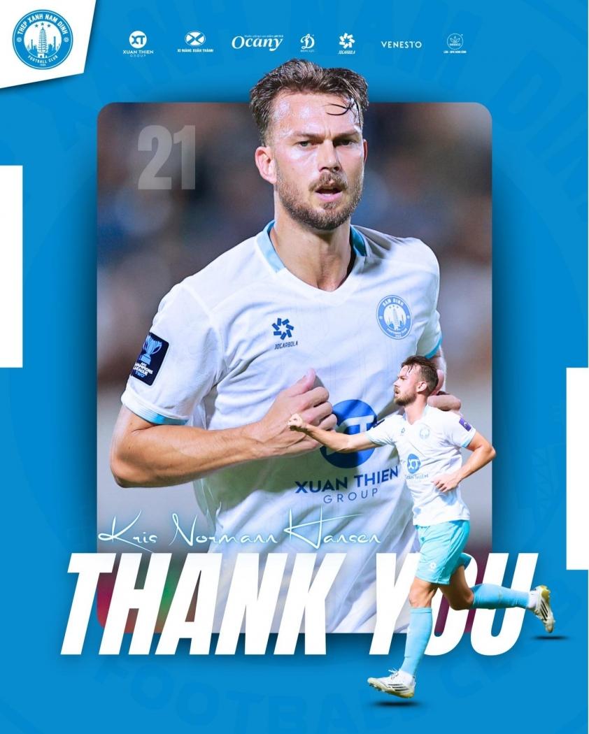 Kristoffer Normann chính thức khép lại quãng thời gian ngắn ngủi tại Thép Xanh Nam Định để chuyển sang thi đấu tại giải Hạng Nhất Trung Quốc. Chưa đầy một tháng sau khi nói lời chia tay đội bóng thành Nam hôm 21/1, tiền vệ người Na Uy đã đạt thỏa thuận gia nhập CLB Đại Liên Côn Thành, mở ra chương mới trong sự nghiệp.