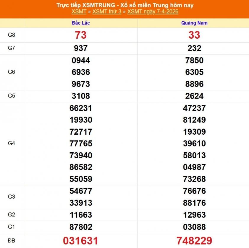 Kết quả xổ số miền Trung (XSMT) ngày 7/4