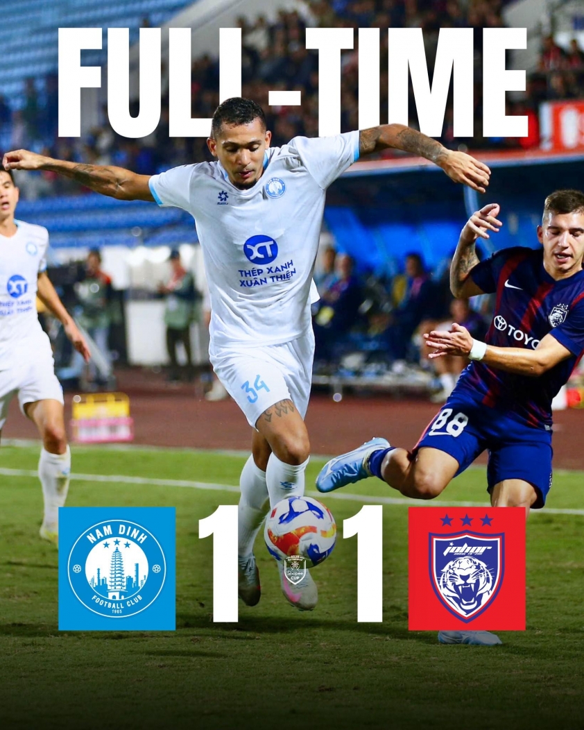 Tuy nhiên, kinh nghiệm và chiều sâu lực lượng của Johor Darul Ta'zim đã lên tiếng ở thời điểm quyết định. Phút 87, Bergson – ngôi sao sáng nhất bên phía đội khách tận dụng tốt cơ hội để ghi bàn gỡ hòa, khiến Nam Định đánh rơi chiến thắng trong gang tấc. Dù vậy, kết quả hòa 1-1 vẫn đủ để đại diện Việt Nam bảo toàn ngôi đầu bảng, khép lại vòng bảng với 4 chiến thắng và 1 trận hòa là thành tích cho thấy sự ổn định đáng nể.