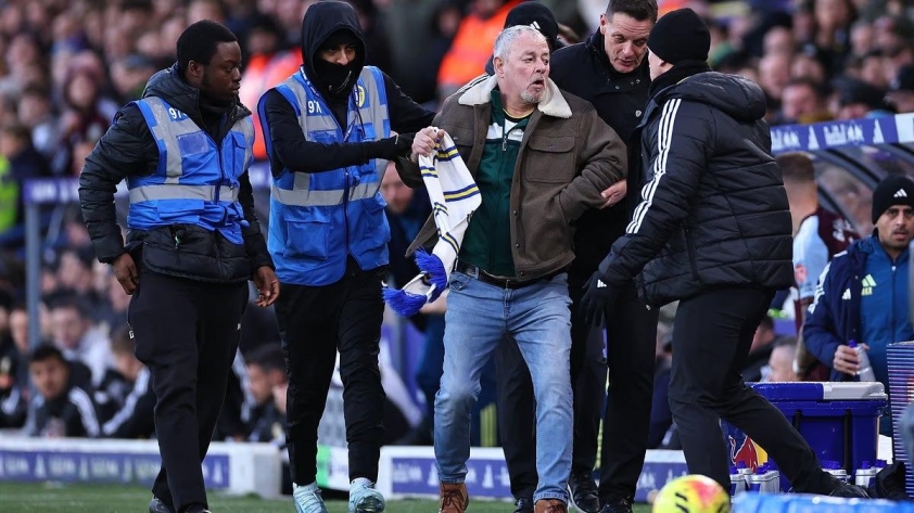 Trong trận đấu hôm chủ nhật, một người hâm mộ quá khích đã chạy vào khu kỹ thuật của Leeds United và gây hấn với huấn luyện viên đội chủ nhà.