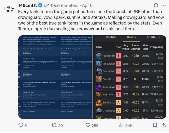 Thứ mà nhiều game thủ phát hiện ở meta mùa 17 chính là việc các tướng Chống Chịu hay trang bị phòng thủ dường như yếu kém hơn rất nhiều.