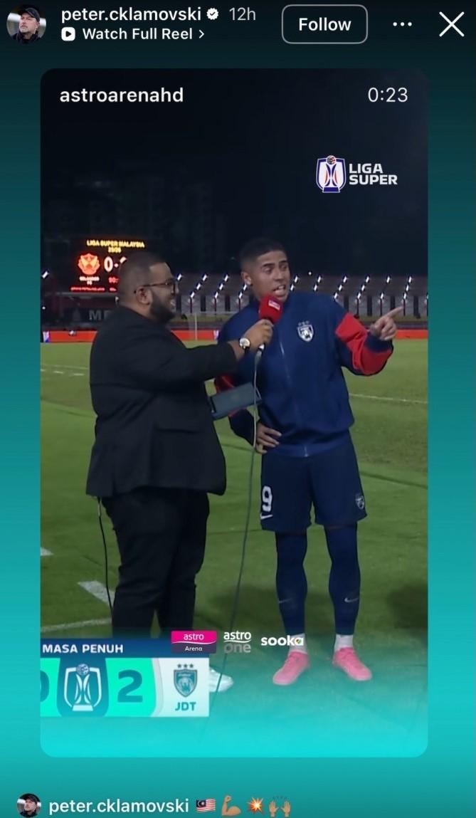 Việc chiến lược gia người Australia để lại biểu tượng quốc kỳ Malaysia dưới bài đăng liên quan đến tiền đạo Bergson Da Silva đã nhanh chóng thổi bùng những đồn đoán về khả năng chân sút của Johor Darul Ta’zim (JDT) sẽ sớm khoác áo ĐTQG Malaysia.