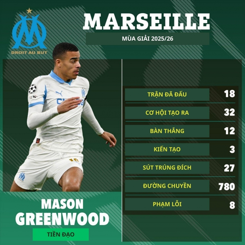 Sau khi nghe con trai trình bày đầy đủ mọi thông tin liên quan đến Greenwood, bà đã đưa ra lời khuyên dứt khoát: “Hãy làm điều đó.” Chính câu trả lời này đã tiếp thêm niềm tin để Longoria tiến tới hoàn tất thương vụ. Thực tế đã chứng minh, quyết định của Marseille không hề sai lầm về mặt chuyên môn. Kể từ khi cập bến sân Velodrome, Mason Greenwood liên tục tỏa sáng và nhanh chóng trở thành trụ cột trên hàng công. Sau 64 lần ra sân, tiền đạo người Anh đã ghi tới 42 bàn thắng – một hiệu suất khiến giới chuyên môn không khỏi ngả mũ.