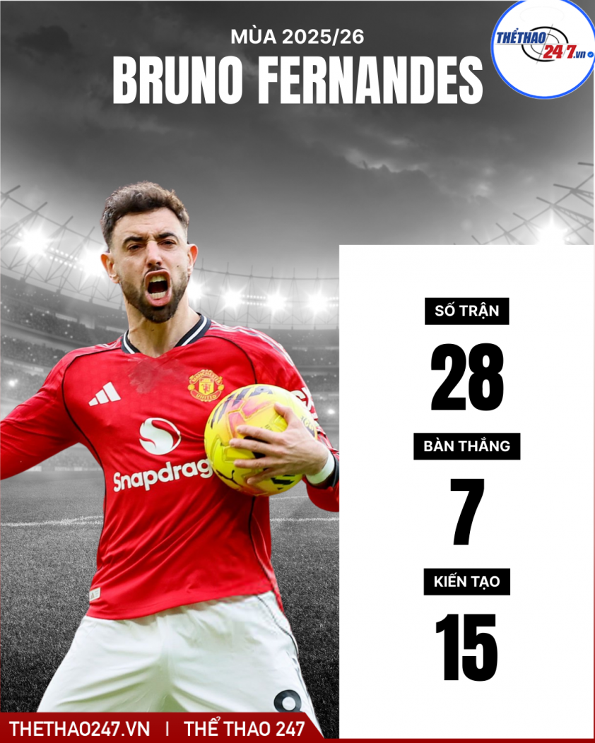 Ở mùa giải gần nhất, tiền vệ 31 tuổi tiếp tục giữ vai trò trung tâm trong hệ thống chiến thuật của Manchester United. Không chỉ đóng góp về mặt chuyên môn với những bàn thắng và kiến tạo quan trọng, Bruno còn là thủ lĩnh tinh thần của đội bóng cả trong lẫn ngoài sân cỏ.
