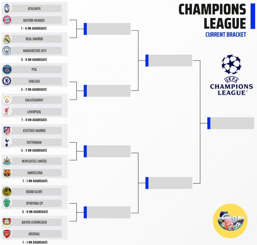 Dù có đến 6 đại diện góp mặt ở vòng 16 đội, nhưng không đại diện nào của Ngoại hạng Anh giành lợi thế sau trận lượt đi và đều đối mặt với nguy cơ bị loại sớm. Trong khi đó, Atalanta - đại diện duy nhất của Serie A ở vòng knockout Champions League cũng đứng trước viễn cảnh chia tay giải đấu sau loạt trận này.