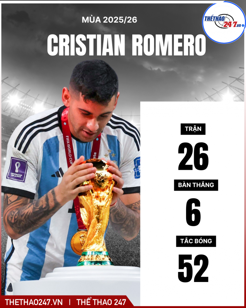 Mùa này, Romero đã ghi 6 bàn thắng và 4 kiến tạo sau 26 trận dù chơi ở vị trí trung vệ. Sự xuất sắc của anh là điểm tựa để mùa giải tệ hại của Tottenham chưa trở thành thảm họa. Vậy nên sẽ rất khó để thuyết phục Tottenham nhượng lại ngôi sao hàng đầu của mình.