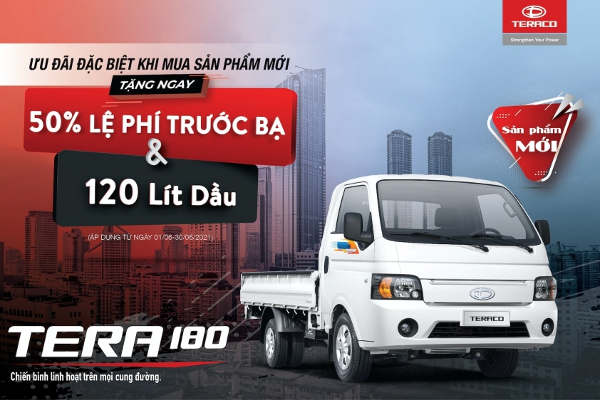 | Với mong muốn tạo điều kiện cho khách hàng tiếp cận với sản phẩm mới, đồng thời tri ân quý khách hàng đã tin dùng và ủng hộ sản phẩm xe tải Teraco trong thời gian qua, Công ty TNHH Daehan Motors mang đến “ƯU ĐÃI ĐẶC BIỆT KHI MUA SẢN PHẨM MỚI” với tổng giá trị quy đổi tiền mặt lên đến 5 triệu đồng. Chương trình được áp dụng cho tất cả khách hàng khi mua xe Tera180 (tải trọng 1.8T) từ ngày 01/06 đến hết ngày 30/06/2021, tại hệ thống đại lý ủy quyền chính thức của Công ty TNHH Daehan Motors trên toàn quốc. Để biết thêm thông tin chi tiết, vui lòng liên hệ hotline 0902 409 909 hoặc truy cập www.daehan.vn |