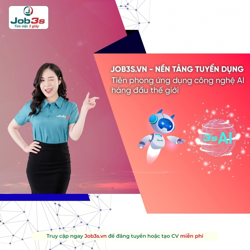 Job3s.vn là nền tảng tuyển dụng tiên phong tích hợp hơn 20 loại AI hàng đầu thế giới. Website được nghiên cứu và phát triển bởi các chuyên gia công nghệ AI hàng đầu thế giới và Việt Nam.