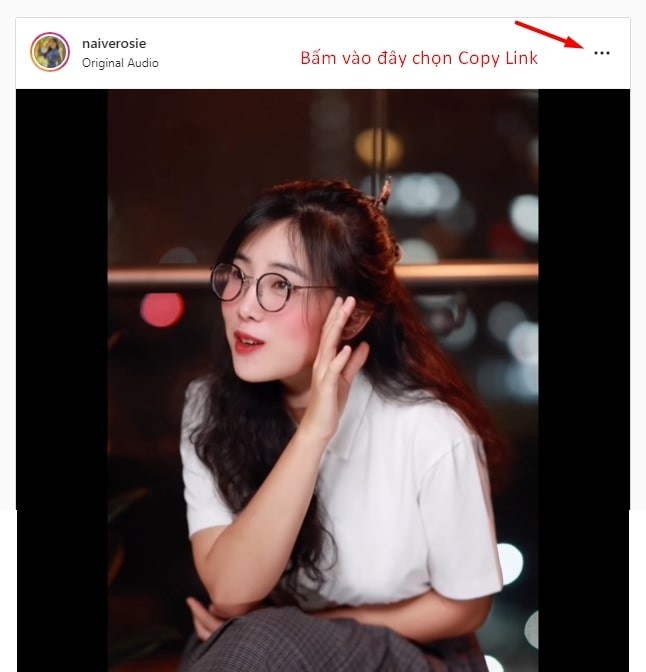 - Bước 1: Đăng nhập vào Instagram và click vào dấu 3 chấm để copy link video cần tài.
