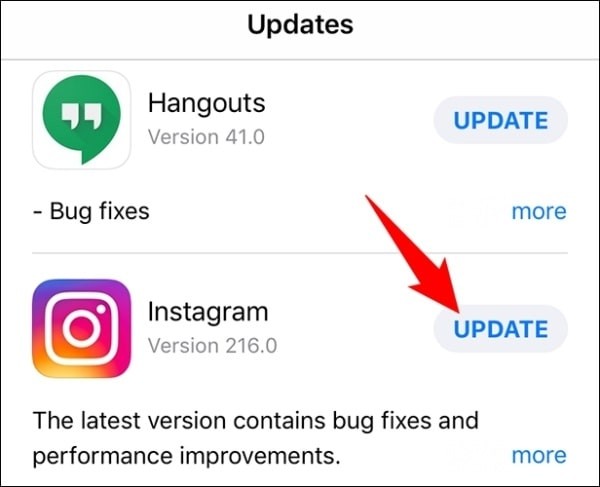 4. Cập nhật ứng dụng Instagram