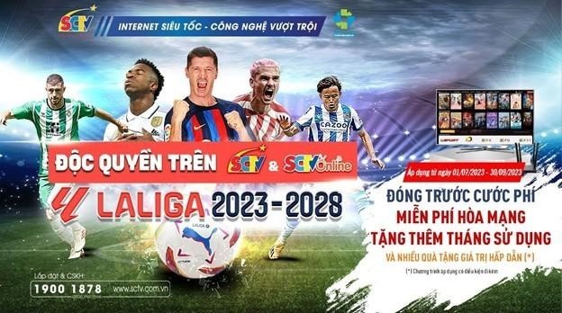 Đồng hành với LALIGA, SCTV sẽ có những chương trình tổng hợp trước vòng đấu, tổng hợp sau vòng đấu và nhiều chương trình bên lề đặc sắc. Đặc biệt, SCTV muốn chia sẻ những ưu đãi cùng khán giả, từ 01/07/2023 đến 30/09/2023, truyền hình cáp SCTV triển khai chương trình khuyến mại với nhiều chính sách hấp dẫn dành cho khách hàng.
