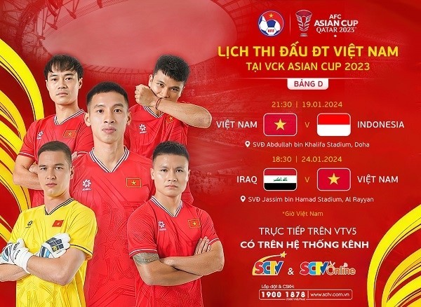 Để cổ vũ tinh thần cho đội tuyển Việt Nam, ngoài những cổ động viên nhiệt tình theo đội tuyển đến tận Qatar thì sự cổ vũ của khán giả Việt Nam qua truyền hình cũng là nguồn động viên rất lớn cho đội tuyển. SCTV sẽ cùng người hâm mộ dõi theo bước tiến của đội tuyển Việt Nam cũng như toàn bộ giải Asian Cup 2023 trên các kênh VTV2, VTV5, VTV5 Tây Nam Bộ, VTV Cần Thơ thuộc hệ thống truyền hình SCTV và ứng dụng SCTV Online.