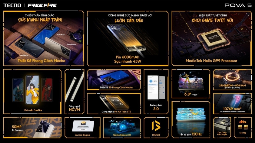 Tecno Pova 5 ra mắt với Pin 6.000mAh, Helio G99 và Phiên bản đặc biệt Free Fire