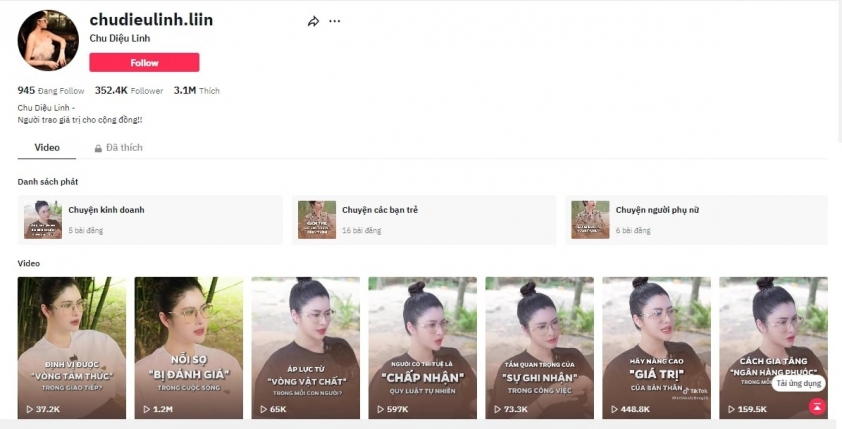Tuy nhiên, phong thái tự tin của một người phụ nữ không chỉ đến từ đẹp bên ngoài mà quan trọng hơn thế là phải bắt nguồn từ sức khỏe tinh thần và nguồn kiến thức dồi dào bên trong. Đó tiếp tục là lý do để cô xây dựng kênh Tiktok chia sẻ những giá trị về triết lý nhân sinh bằng chính cái tên của mình - Chu Diệu Linh. Cô bắt đầu chia sẻ về câu chuyện của người phụ nữ như: Cách để trở thành một người phụ nữ mạnh mẽ - độc lập; Hành trình khó khăn của người phụ nữ trên thương trường; Sứ mệnh của người phụ nữ trong cuộc sống hay Định nghĩa về một người phụ nữ thành công. Tất cả đều là những chia sẻ rất chân thành từ chính trải nghiệm cũng như quá trình học hỏi không ngừng của bản thân.