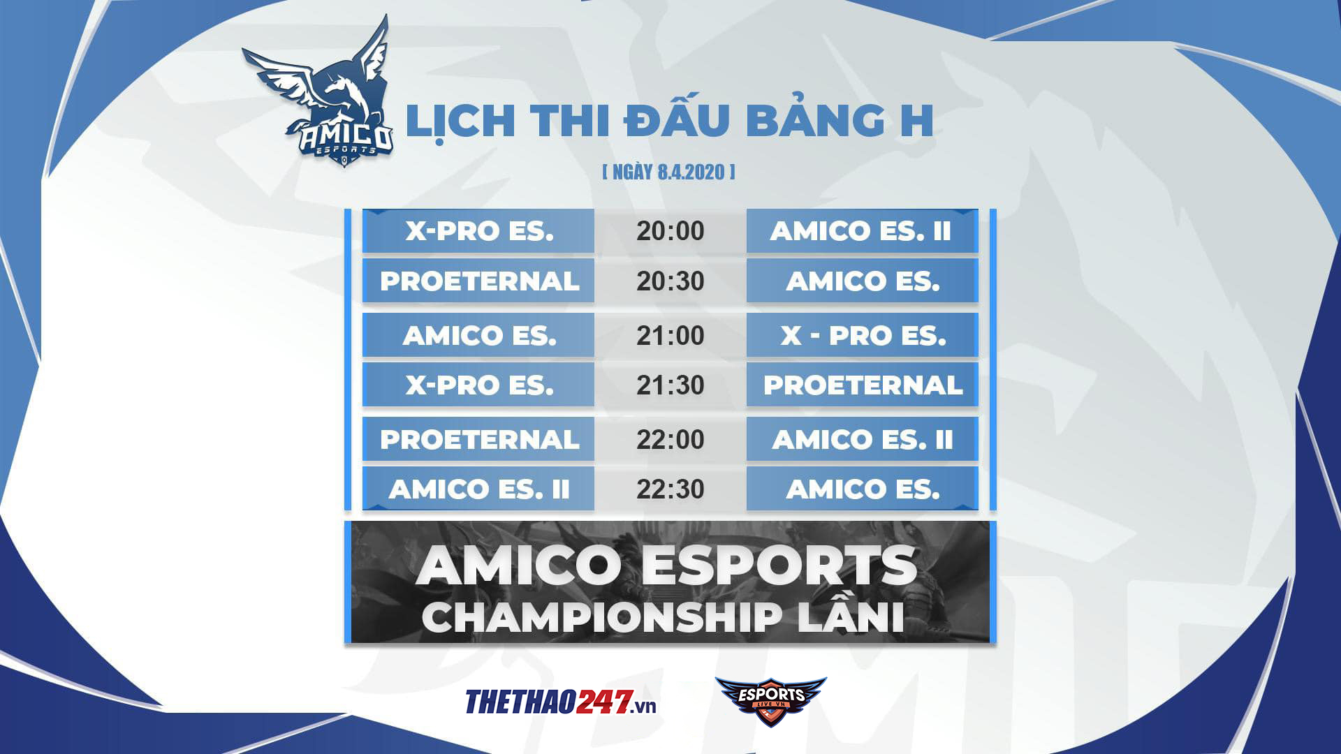 Lịch thi đấu vòng bảng giải đấu Amico Esports Championship 2020