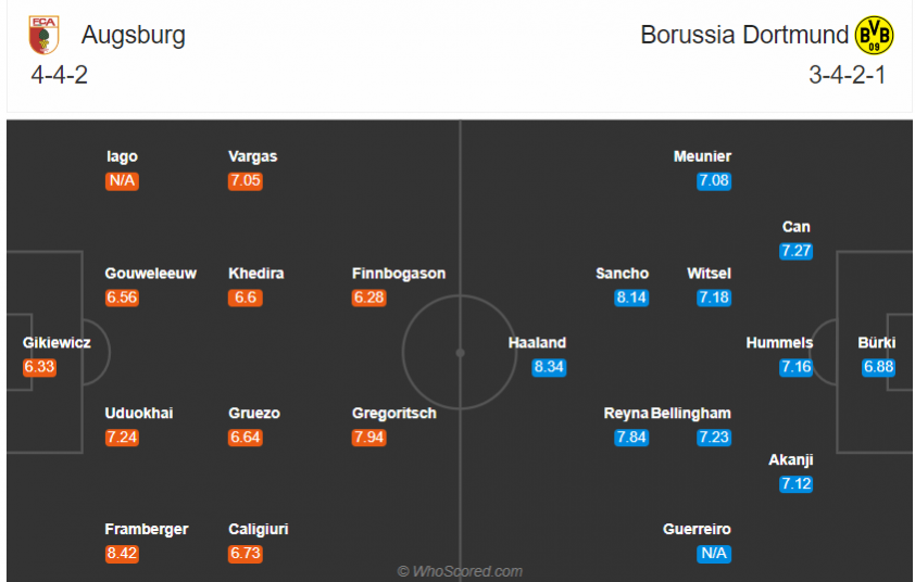 Trong 2 lần đối đầu gần nhất ở Bundesliga mùa giải trước, Augsburg đã thảm bại dưới chân Dortmund khi phải nhận đến 10 bàn thua sau 2 lượt trận. Chắc hẳn các fan của Die Fuggerstadter vẫn chưa quên ác mộng mang tên Erling Haaland ở mùa giải trước, tiền đạo người Na Uy đã có cú hattrick ngay trong ngày ra mắt câu lạc bộ mới và giúp Dortmund lội ngược dòng khi đã bị dẫn trước 0 - 2.